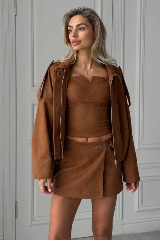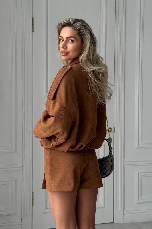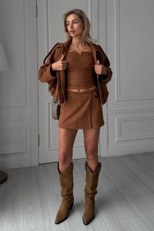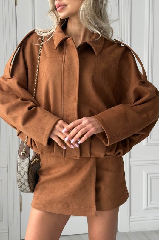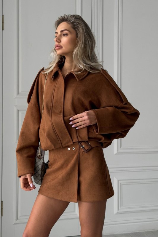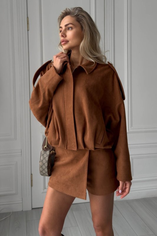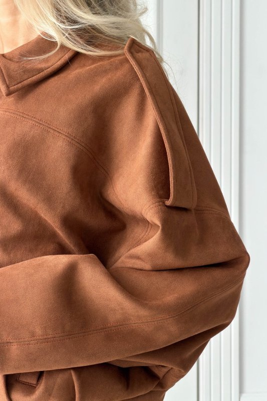 Стильний бомбер з еко-замші — універсальна модель, що поєднує комфорт та сучасний силует. М’яка фактурна тканина виглядає дорого, а жакардова підкладка додає виробу охайності та зносостійкості. Завдяки вільному крою бомбер легко комбінується як із базовими речами, так і з більш жіночними образами.