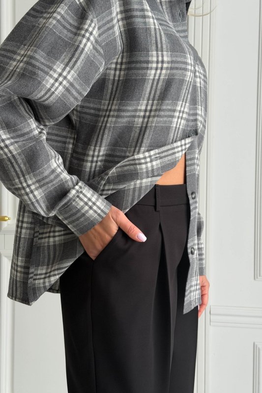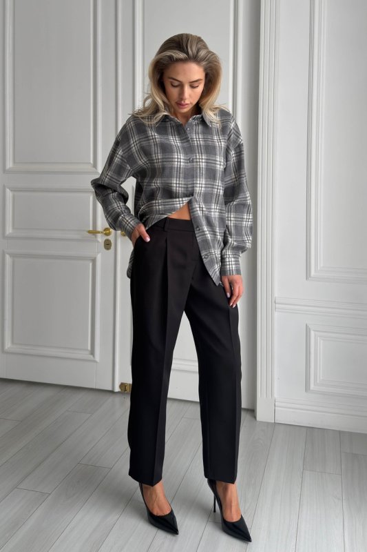 Класичні брюки з костюмної тканини — універсальна база для ділових та повсякденних образів. Модель має прямий силует із легким звуженням донизу, що візуально витягує ноги та робить фігуру більш пропорційною. Низька посадка додає сучасного характеру, а стриманий крій дозволяє легко комбінувати брюки з жакетами, сорочками чи трикотажем.
