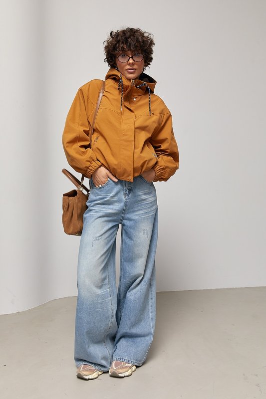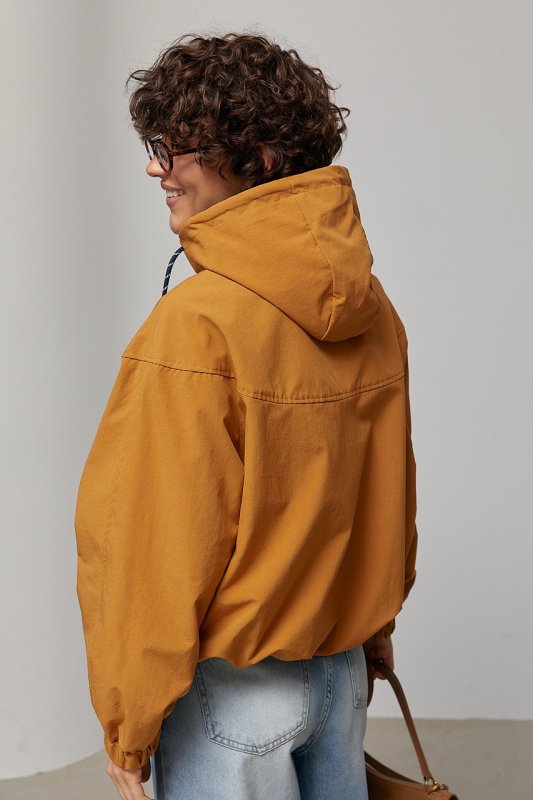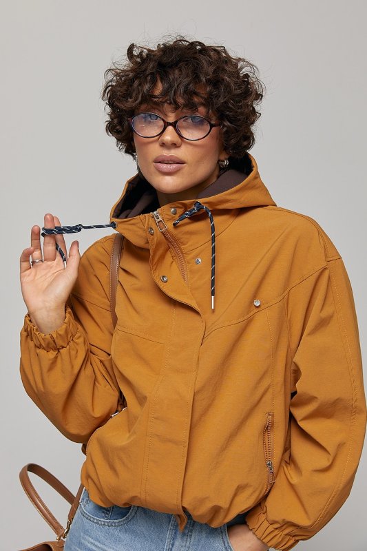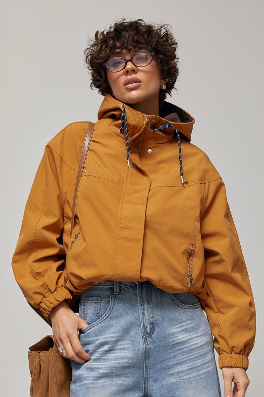 Коротка жіноча ветровка з капюшоном 7801 світло-коричневий