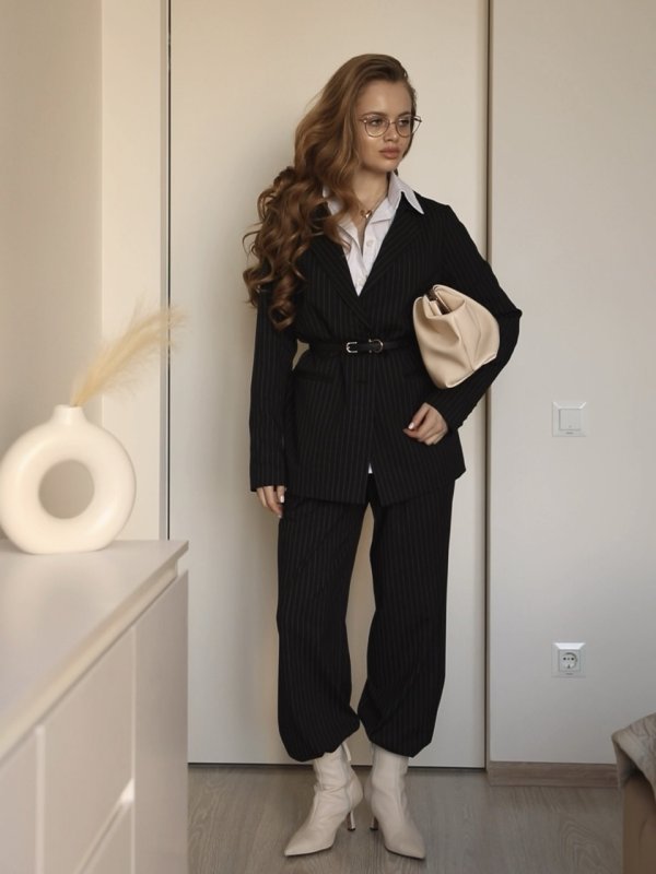 Класичний костюм – трійка: піджак, жилет, штани палаццо.