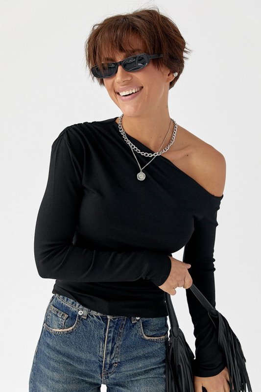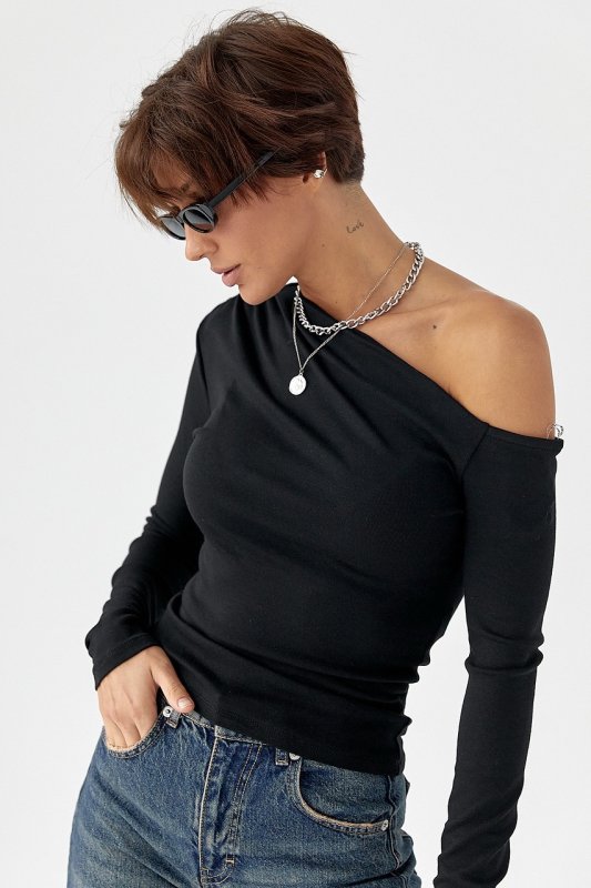 Обтягуючий лонгслів з відкритим плечем 161301 чорний