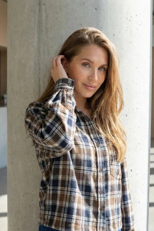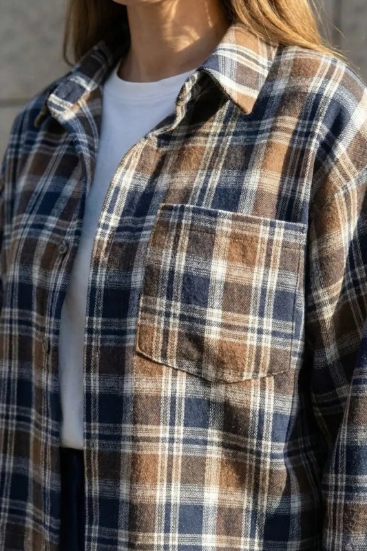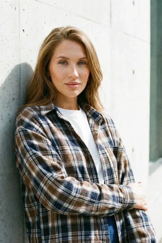 Стильна демісезонна сорочка з сорочкового кашеміру в клітинку — прямий вільний фасон для комфортного повсякденного образу. Модель оснащена цільнокроєною планкою та класичним сорочковим коміром, а декоративні елементи, такі як затяжка по низу та накладна кишеня, додають сучасний акцент. Фурнітура включає ґудзики, резинку та затискачі для регулювання посадки.