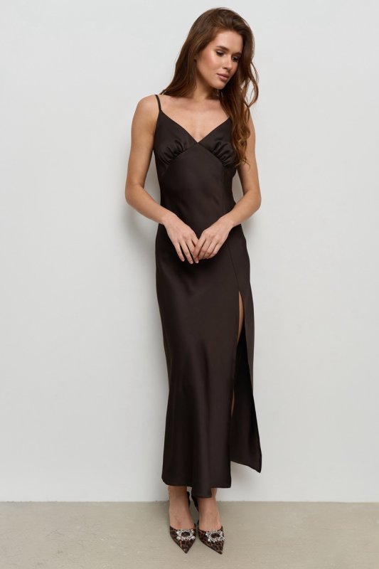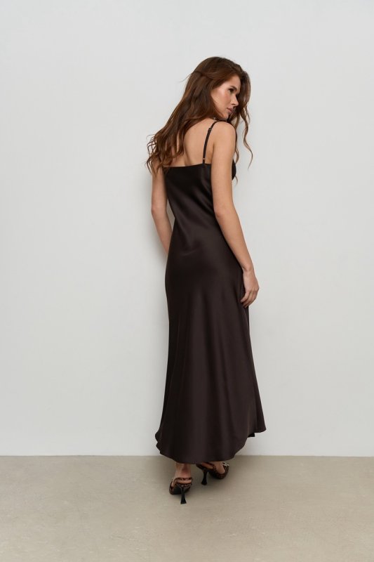 Шоколадна елегантна шовкова сукня на тонких бретелях 1476.1