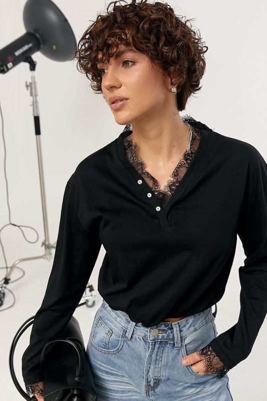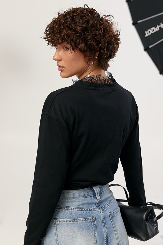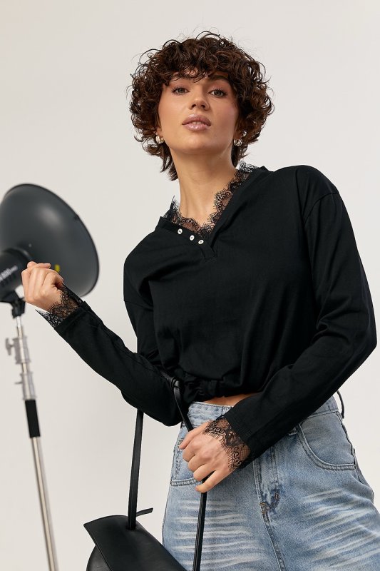 Вільний лонгслів із мереживом — поєднання комфорту та ніжної жіночності. Модель виконана з однотонного трикотажу, приємного до тіла та зручного для щоденного носіння. Вільний фасон створює розслаблений силует і добре пасує до різних типів фігури.
