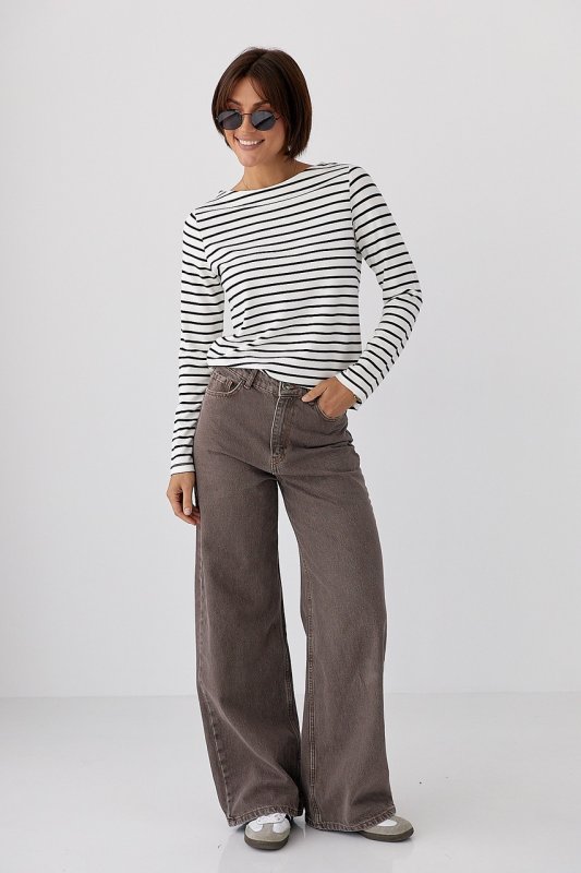 Трикотажний лонг у смужку — стильна базова річ, що поєднує комфорт і невимушений шарм. М’який трикотаж приємний до тіла, добре тягнеться й зберігає форму, забезпечуючи зручність протягом усього дня.