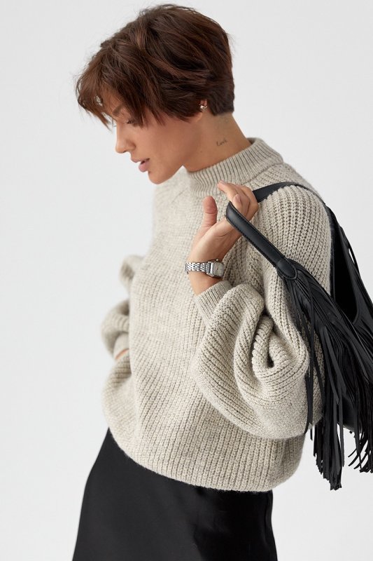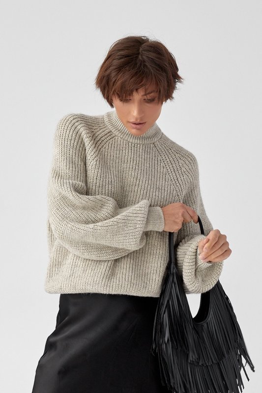 В'язаний светр із довгими рукавами реглан 102010 меланж