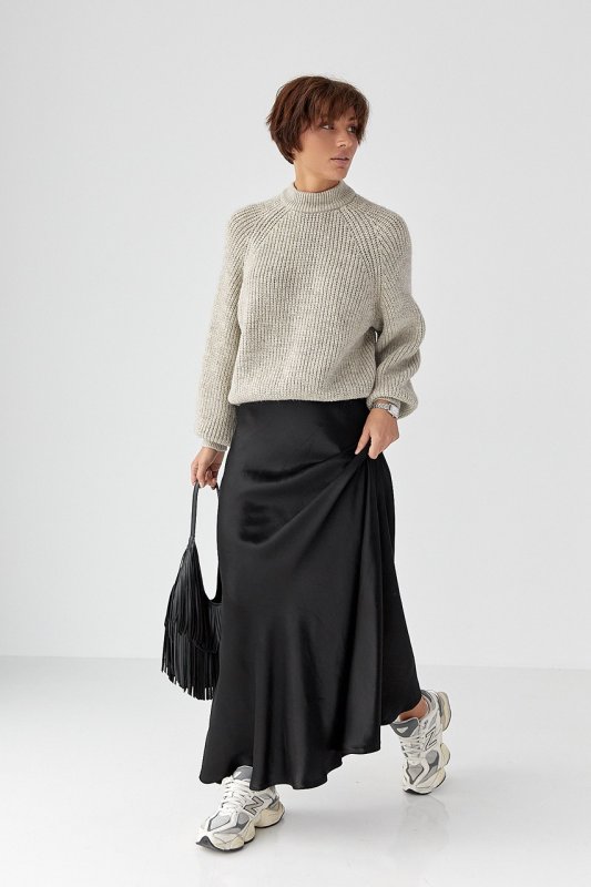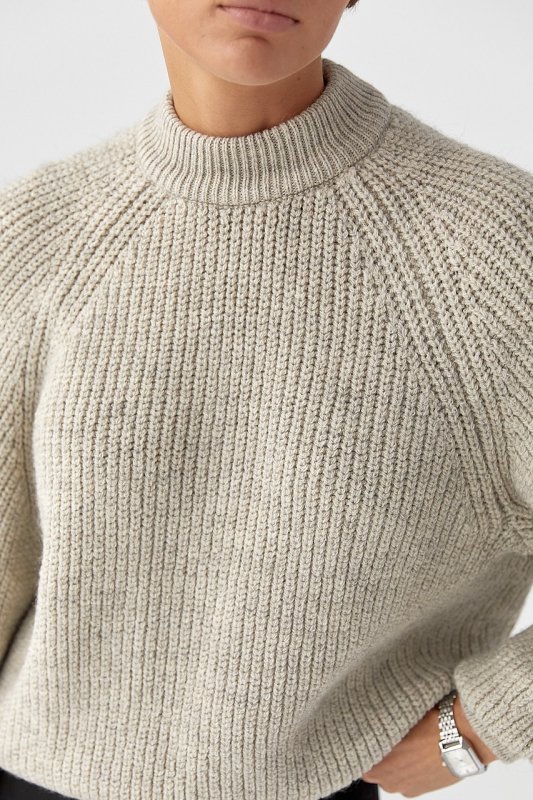 В’язаний светр із рукавами реглан — затишна й стильна модель, що поєднує комфорт і сучасну естетику. Щільна велика в’язка створює виразну текстуру, додаючи об’єму та підкреслюючи лаконічність силуету.