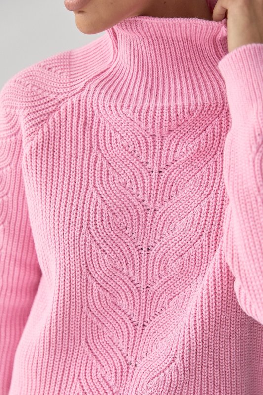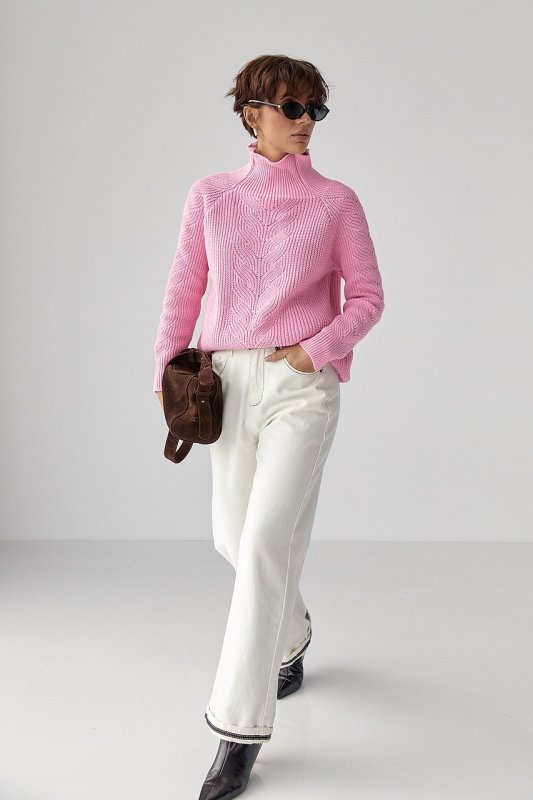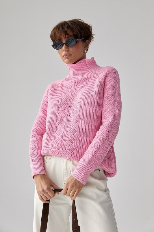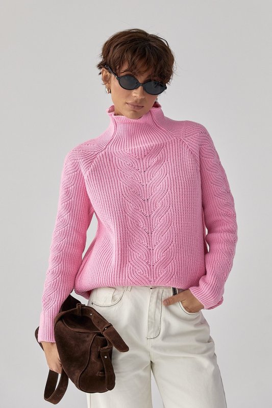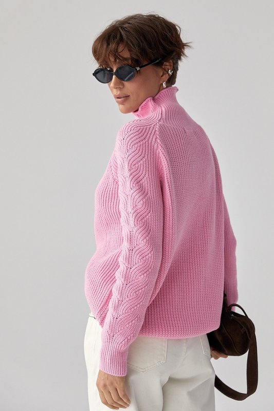 Жіночий в'язаний светр з кісками 260525 рожевий