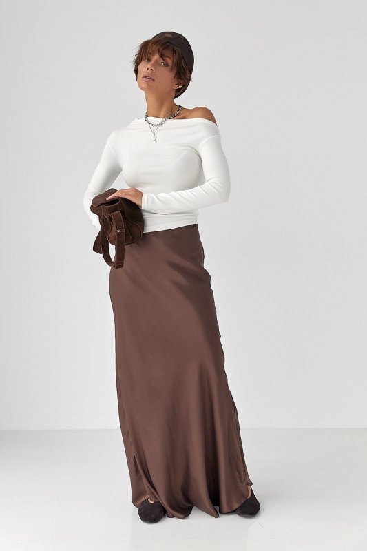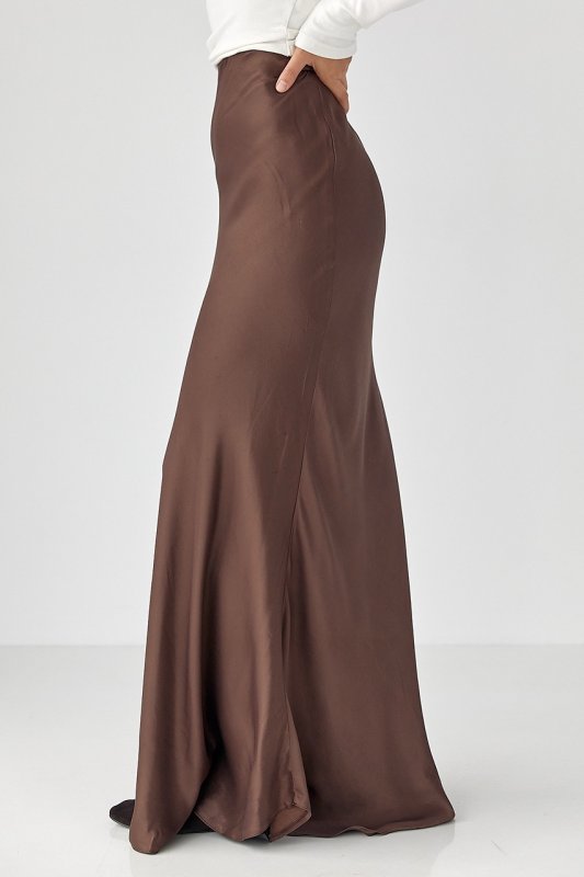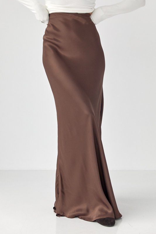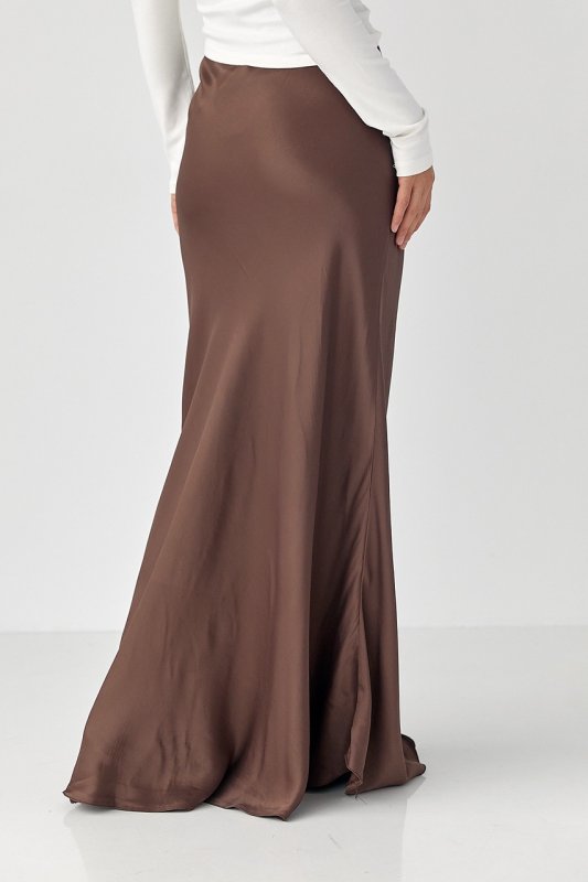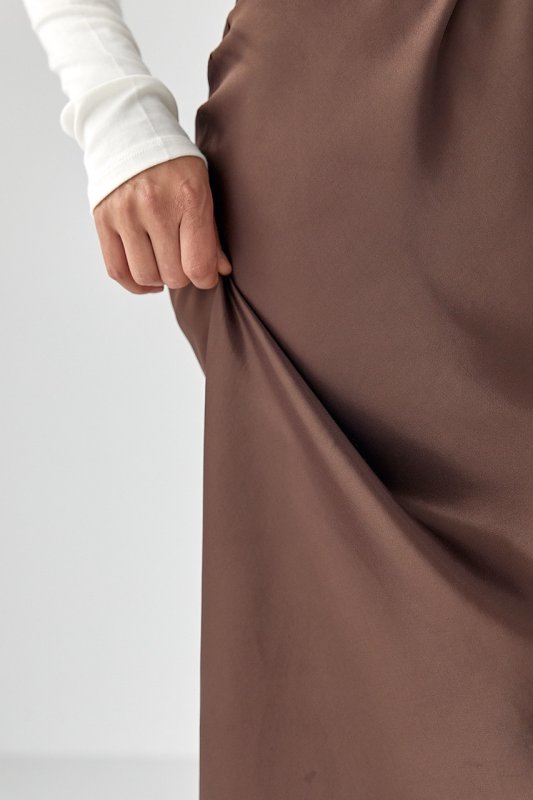 Жіноча атласна спідниця довга на гумці 81151 темно-коричневий