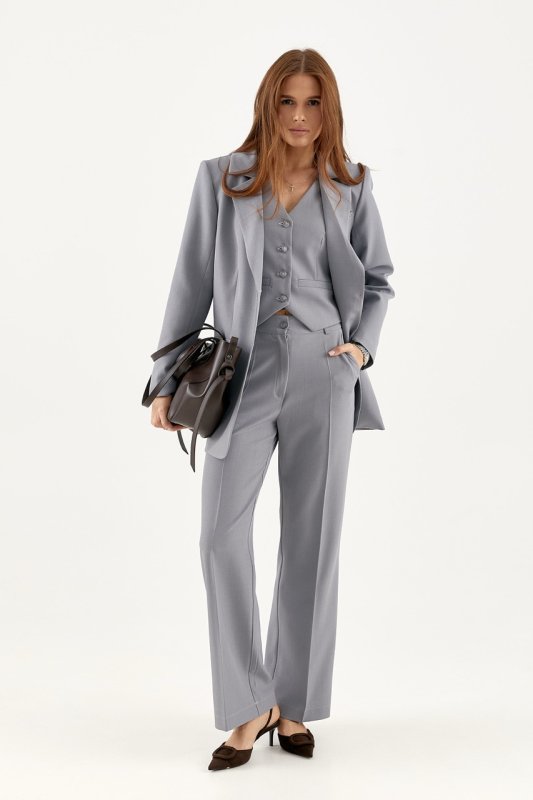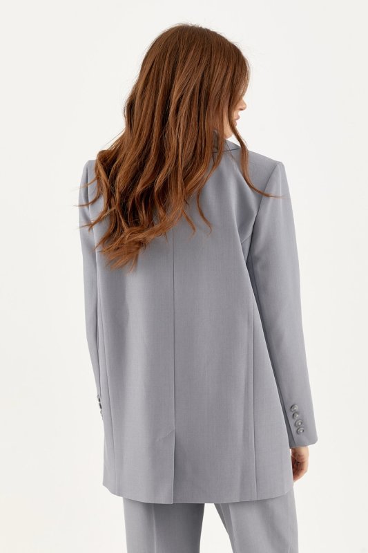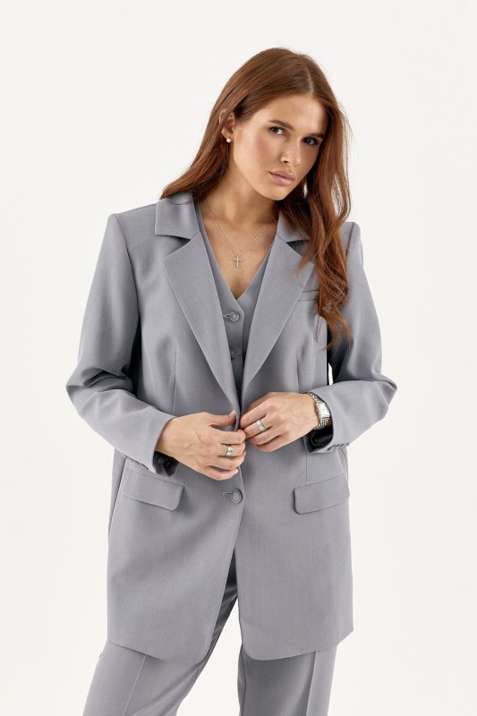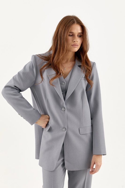 Элегантный серый женский пиджак классического кроя – универсальная база для стильного и современного гардероба. Выполнен из качественной костюмной ткани, держит форму и обеспечивает комфорт в течение дня. Модель имеет свободный силуэт с акцентом на плечах, лацканы средней ширины, застёжку на пуговицы и карманы с клапанами. Насыченный цвет делает пиджак идеальным как для офисных луков, так и для вечерних образов. Легко сочетается с брюками, юбками и платьями, добавляя элегантности и уверенности.