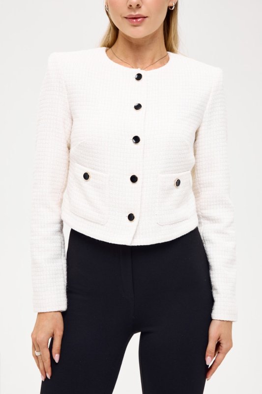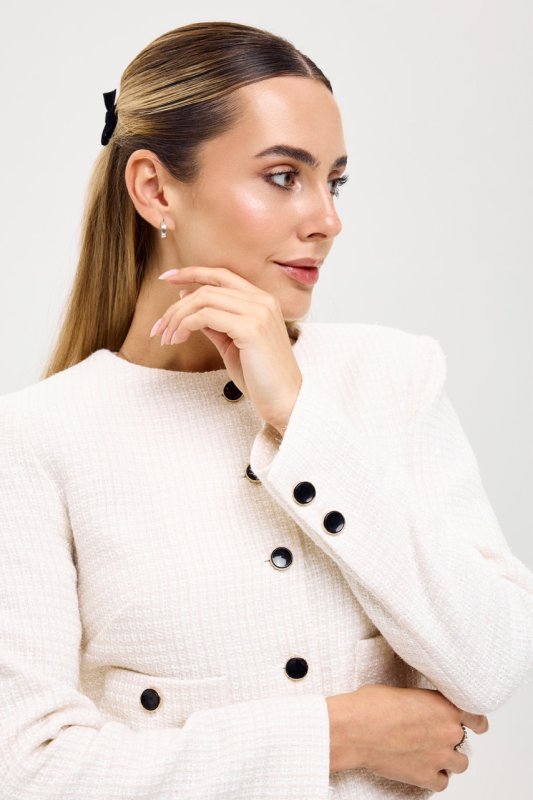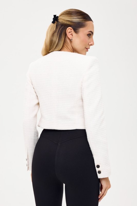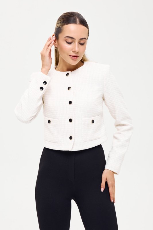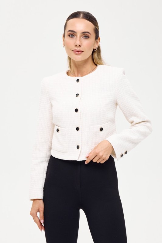 Жакет из ткани букле молочного цвета с люрексной нитью 7143